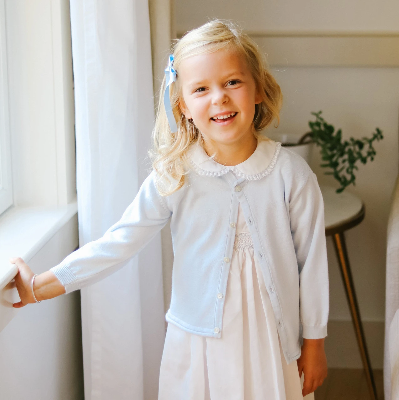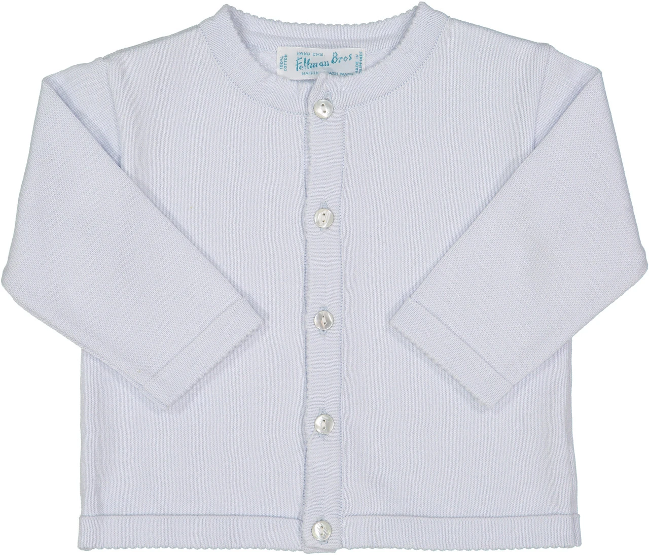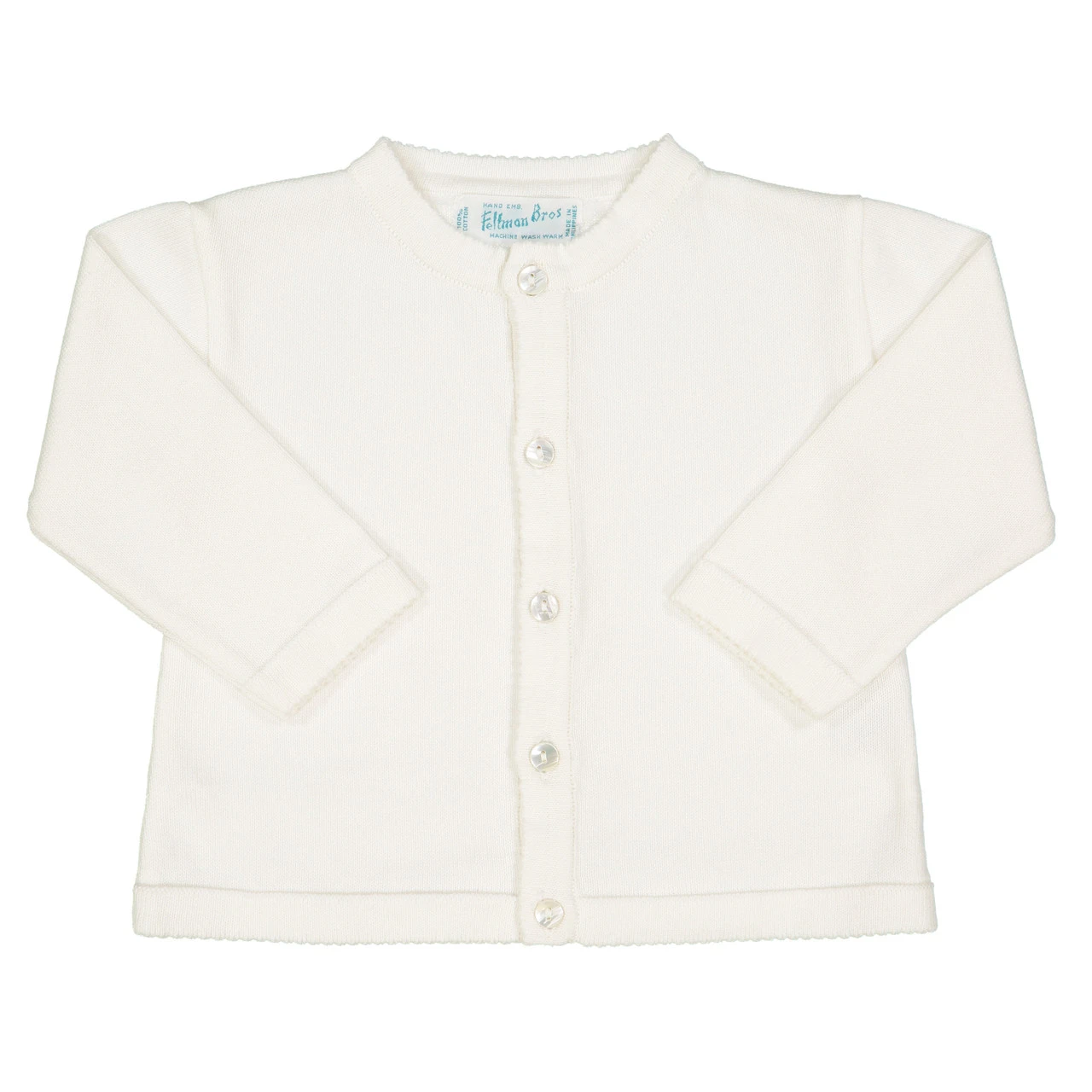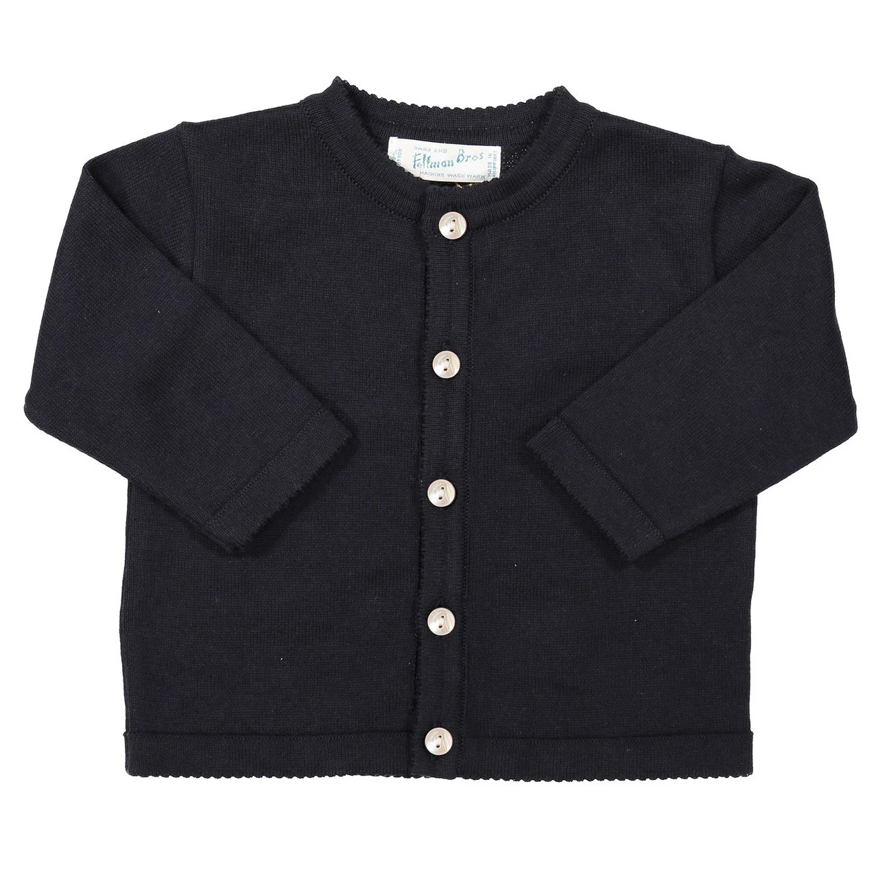 A cardigan as versatile as it is classy! This knit cardigan comes in white, navy, and red with a button-down front, giving you the option of being worn open on top of an outfit, or closed as its own piece. With its soft and warm knit, this cardigan will keep your little one warm and cozy all the time. The perfect piece for layering on top of holiday outfits, special occasion sets, or everyday layette. Crisp, cute, and oh so classy!