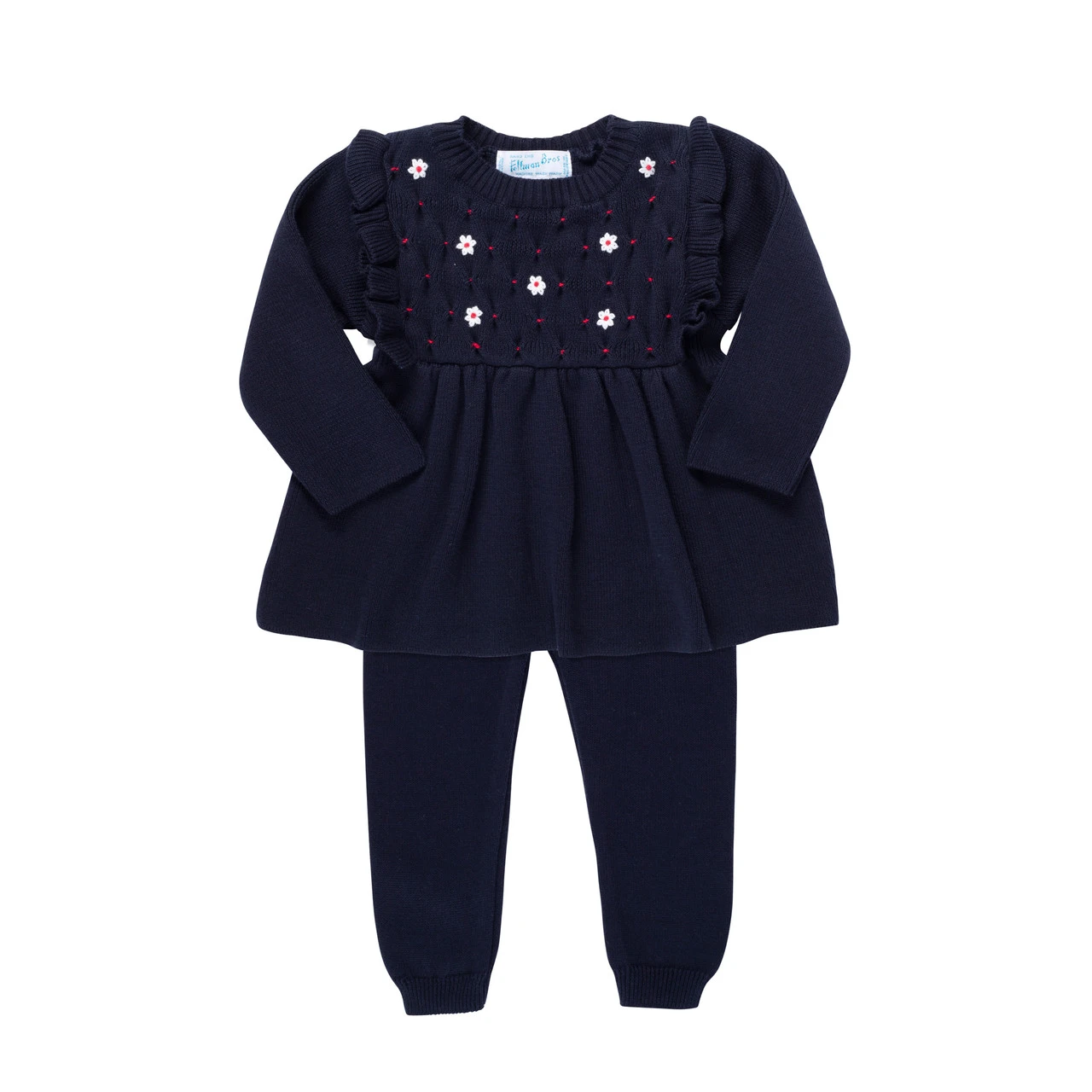 A beautiful knit outfit for your little girl this winter! Tunic top is a bit longer than our typical tops, with dainty hand-stitched daisies and a diamond design. Great for holiday season, family portraits, or any day of winter!