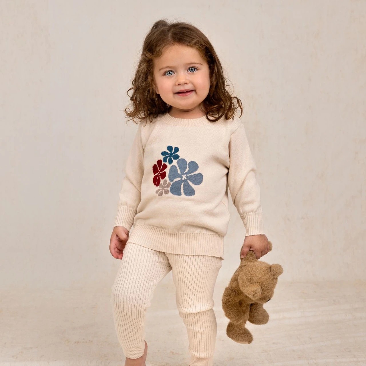 The perfect knit outfit for your little girl this winter! Made of soft, warm cotton in a timeless ecru color – the perfect blend of warmth and style. Pants are ribbed for an updated, more fitted look.