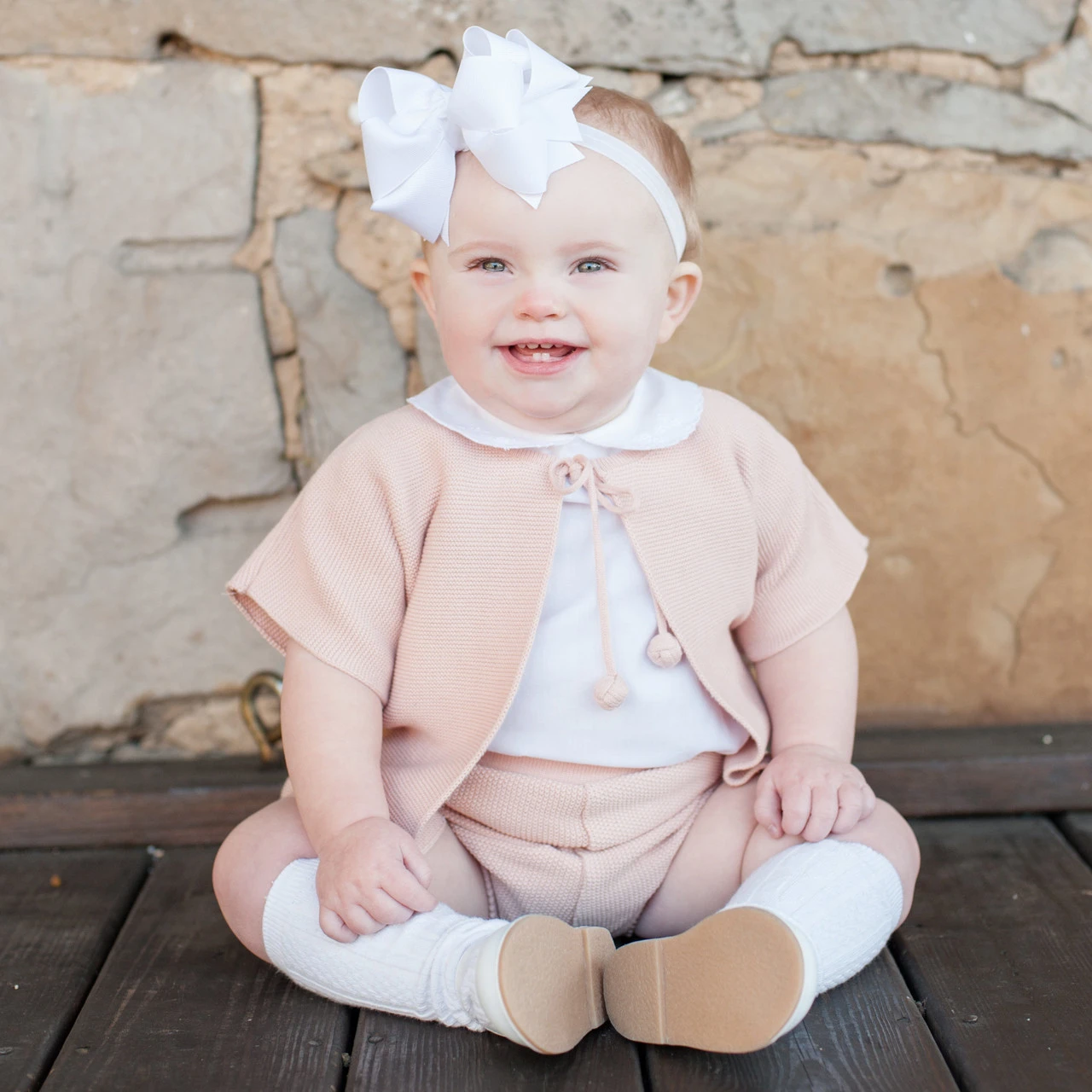 Feltman Brothers is known for combining vintage style with timeless, heirloom quality, and this piece does not disappoint! This elegant Onesie Shirt features a dainty scallop-edged collar with an embroidered floral design, and adorable puff sleeves that add a touch of flair. Pair with a Feltman Brothers cardigan, suspender set, or bloomers, and she’s good to go!