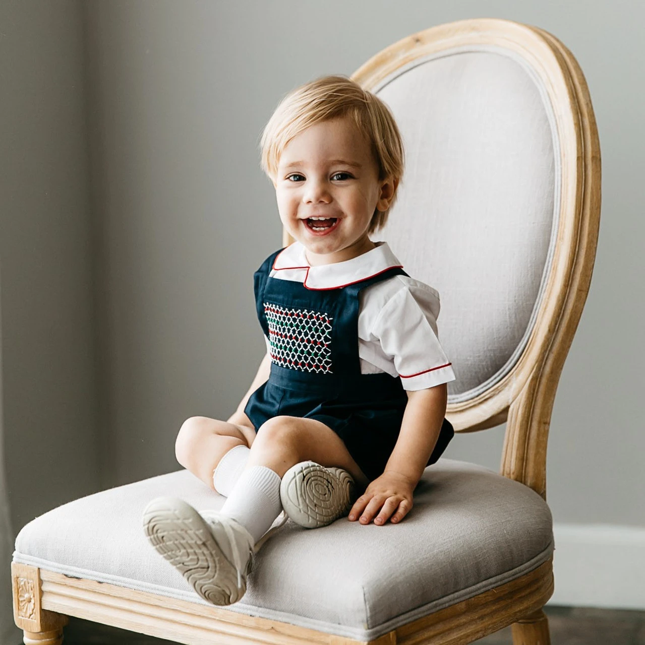 Ho ho ho, the holidays are here and you want your little boy to look dapper as can be. This heirloom-quality Feltman’s piece is the perfect smocked Christmas outfit for your loved one this season!