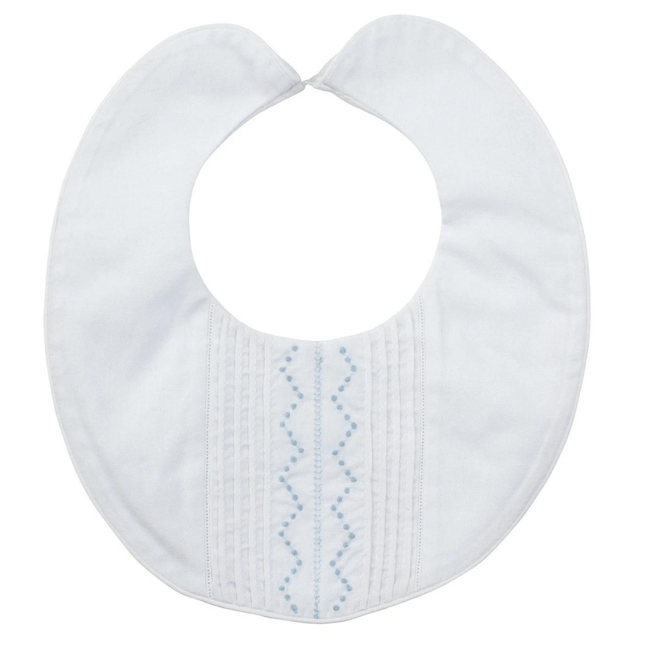 Protect your little one’s gown, romper, or bobby suit with a coordinating vintage style bib. This classy baby boy accessory is made with beautiful details down the center – fine pintucks and beading lace beside intricate hand embroidery and a central row of boring. With a bib so elegant, you won’t want your prince to get dirty at all…