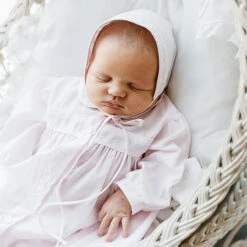 Special occasions with Feltman Brothers are celebrated with vintage style and class, the way it should be. This exquisite baby bonnet is adorned with so much elaborate detail, from the beautiful French lace and boring inserts, the hand made pintucks, and the dainty white ribbon tied beneath the chin. Meet a baby bonnet perfect for your little one’s special occasion, a breathtaking masterpiece made of heirloom quality you’ll be reusing for generations.